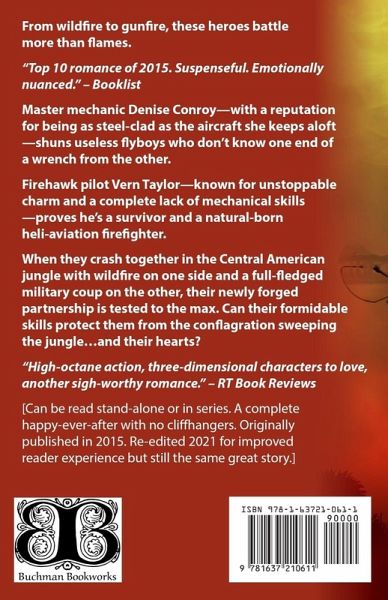 From wildfire to gunfire, these heroes battle more than flames. "Top 10 romance of 2015. Suspenseful. Emotionally nuanced." - Booklist Master mechanic Denise Conroy-with a reputation for being as steel-clad as the aircraft she keeps aloft-shuns useless flyboys who don't know one end of a wrench from the other. Firehawk pilot Vern Taylor-known for unstoppable charm and a complete lack of mechanical skills-proves he's a survivor and a natural-born heli-aviation firefighter. When they crash together in the Central American jungle with wildfire on one side and a full-fledged military coup on the other, their newly forged partnership is tested to the max. Can their formidable skills protect them from the conflagration sweeping the jungle...and their hearts? "High-octane action, three-dimensional characters to love, another sigh-worthy romance." - RT Book Reviews [Can be read stand-alone or in series. A complete happy-ever-after with no cliffhangers. Originally published in 2015. Re-edited 2021 for improved reader experience but still the same great story.] Buy now to join the romantic firefighting adventure.