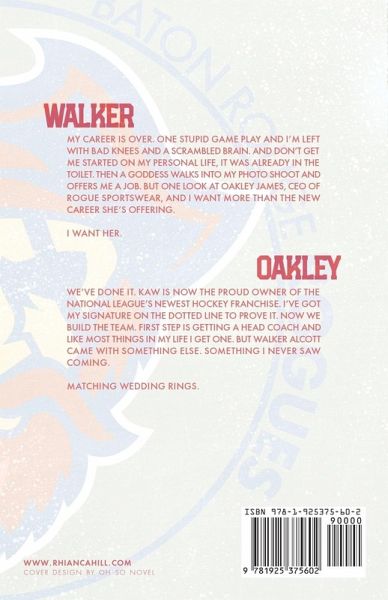 Walker My career is over. One stupid game play and I'm left with bad knees and a scrambled brain. And don't get me started on my personal life, it was already in the toilet. Then a goddess walks into my photo shoot and offers me a job. But one look at Oakley James, CEO of Rogue sportswear, and I want more than the new career she's offering. I want her. Oakley We've done it. KAW is now the proud owner of the national league's newest hockey franchise. I've got my signature on the dotted line to prove it. Now we build the team. First step is getting a head coach and like most things in my life I get one. But Walker Alcott came with something else. Something I never saw coming. Matching wedding rings.