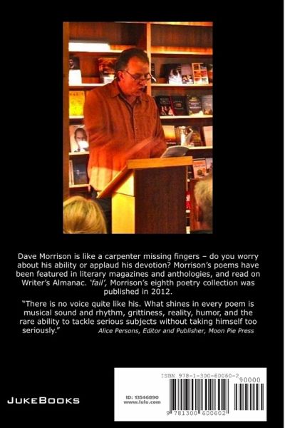 Hot Tears of Shame is poet Dave Morrison's Greatest Hits, culled from eight previous collections. "There is no voice quite like his. What shines in every poem is musical sound and rhythm, grittiness, reality, humor, and the rare ability to tackle serious subjects without taking himself too seriously. There is a wonderful, refreshing lack of pretentiousness and self-pity in all his poems and books." Alice Persons / Poet, Editor and Publisher Moon Pie Press