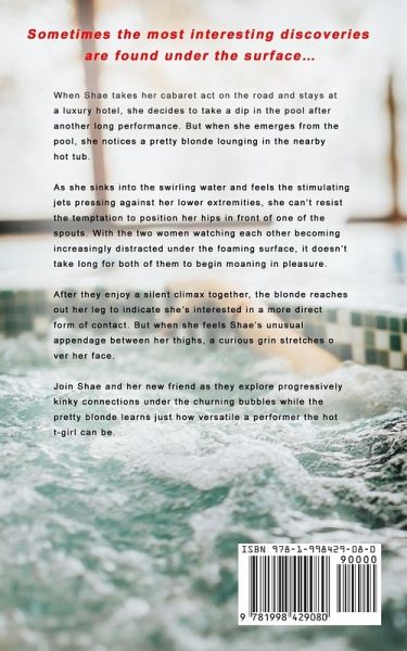 Sometimes the most interesting discoveries are found under the surface... When Shae takes her cabaret act on the road and stays at a luxury hotel, she decides to take a dip in the pool after another long performance. But when she emerges from the pool, she notices a pretty blonde lounging in the nearby hot tub. As she sinks into the swirling water and feels the stimulating jets pressing against her lower extremities, she can't resist the temptation to position her hips in front of one of the spouts. With the two women watching each other becoming increasingly distracted under the foaming surface, it doesn't take long for both of them to begin moaning in pleasure. After they enjoy a silent climax together, the blonde reaches out her leg to indicate she's interested in a more direct form of contact. But when she feels Shae's unusual appendage between her thighs, a curious grin stretches over her face. Join Shae and her new friend as they explore progressively kinky connections under the churning bubbles while the pretty blonde learns just how versatile a performer the hot t-girl can be.