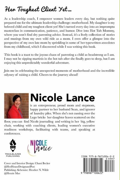 As a leadership coach, I empower women leaders every day, but nothing quite prepared me for the ultimate leadership challenge: motherhood. My daughter is my beloved child and my toughest client yet! She's turned every day into an impromptu masterclass in communication, patience, and humor. Dive into Hot Tub Mommy, where you won't find dry parenting advice. Instead, it's a lively collection of stories and musings from my own wild ride as a mom. I even offer a glimpse into the perspective of my own late mom by sprinkling in some of her typewritten anecdotes from my childhood, which I discovered while I was writing this book. This book is a toast to the joyous chaos of parenting a child as headstrong as I am. I may not be sipping martinis in the hot tub after she finally goes to sleep, but I am enjoying this unpredictably wonderful adventure. Join me in celebrating the unexpected moments of motherhood and the incredible odyssey of raising a child. Cheers to the journey ahead!