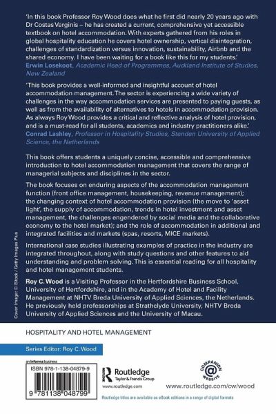 'In this book Professor Roy Wood does what he first did nearly 20 years ago with Dr Costas Verginis - he has created a current, comprehensive yet accessible textbook on hotel accommodation. With experts gathered from his roles in global hospitality education he covers hotel ownership, vertical disintegration, challenges of standardization versus innovation, sustainability, Airbnb and the shared economy. I have been waiting for a book like this for my students.' Erwin Losekoot, Academic Head of Programmes, Auckland Institute of Studies, New Zealand