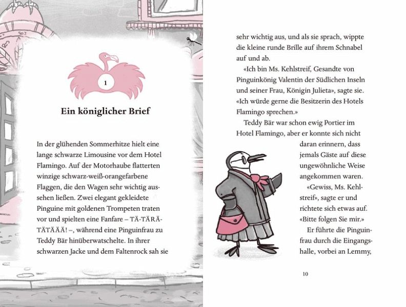 Im HOTEL FLAMINGO bricht ein strahlender Sommer an! Und prompt wird es wieder aufregend, denn die königliche Pinguin-Familie meldet ihren Besuch an. Anna und ihre Mitarbeiter geben ihr Bestes, um alles für die Gäste vorzubereiten. Doch es ist gar nicht so einfach, eisverwöhnte Königspinguine in der Sommerhitze standesgemäß zu empfangen. Und egal, welche Anstrengungen Anna und ihr Team unternehmen, irgendwie scheint alles schiefzulaufen! Ob das mit rechten Dingen zugeht? Denn da ist ja noch Mr. Rüpel vom Hotel Glitz, der Anna und ihrem HOTEL FLAMINGO den Erfolg nicht gönnen will ...