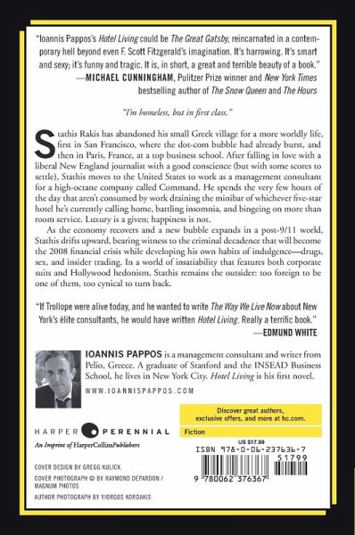 "Ioannis Pappos's Hotel Living could be The Great Gatsby, reincarnated in a contemporary hell beyond even F. Scott Fitzgerald's imagination. It's harrowing. It's smart and sexy; it's funny and tragic. It is, in short, a great and terrible beauty of a book." Michael Cunningham, Pulitzer Prize-winner and New York Times bestselling author of The Snow Queen and The Hours