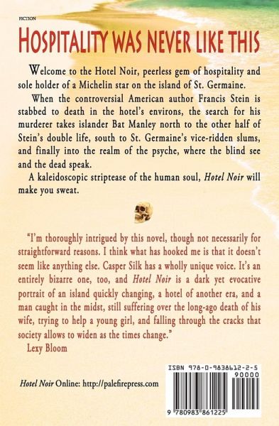 Welcome to the Hotel Noir, peerless gem of hospitality and sole holder of a Michelin star on the island of St. Germaine. When the controversial American author Francis Stein is stabbed to death in the hotel's environs, the search for his murderer takes islander Bat Manley north to the other half of Stein's double life, south to St. Germaine's vice-ridden slums, and finally into the realm of the psyche, where the blind see and the dead speak. A kaleidoscopic striptease of the human soul, Hotel Noir will make you sweat.