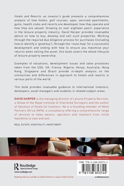 Hotels and Resorts: An investor's guide presents a comprehensive analysis of how hotels, golf courses, spas serviced apartments, gyms and health clubs and resorts are developed, operate and are valued. Drawing on over 18 years' experience in the leisure property industry, David Harper provides invaluable advice on how to buy, develop and sell such properties. Working through the required due diligence process for purchases, including how to identify a "good buy", through the "route map" for a successful development and ending with how to ensure you maximise your returns when selling the asset, this book covers the whole life-cycle of leisure property ownership.