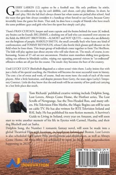 GERRY LARKIN (12) aspires to be a football star. His only problem: he stinks. His co-ordination is zip; he can't dribble, can't shoot, can't play defense. In short, he can't play. He's the lad that's always chosen last when teams are picked after school. And the team that gets him always considers it a handicap when forced to use Gerry, because Gerry invariably loses the game for them. That said, he does have a couple of friends who have much the same problem: guys and girls who love the sport but simply can't play. There's FRAN CURTAIN, keeper and team captain and the brains behind the team (if, indeed, any brains can be found); BIG JIMMY, a sloshing ton of lard who can steamroll over anyone on the field; the BRIGHT BROTHERS-ALMOST and NOT QUITE-twins who are definitely not the brightest of people; HAROLD SMITH, the small cowardly back who hates any kind of confrontation; and TOMMY REYNOLDS, whose Coke-bottle thick glasses spell disaster on the field when he loses them. This inept group of individuals come together to form The HotShots. The kids will play against just about anyone who will take them on. The result, of course, is embarrassing. Scores of 27-nil are not uncommon. Hotshot team members sliding into goalposts, taking out referees in blindside tackles, wiping out opposing parental visitors in "co-ordinated" offensive strikes are all par for the course. The result: they becomes the butt of the country. Until LUCKY LUCY (Beelzebub disguised as a talent scout) visits them. Lucky insists that with just a little of his special coaching, the Hotshots will become the most successful team in history. The cost: a lot of sweat and work, of course. And one more item: the souls of each of the team players. After a little hesitation, and despite protests from Gerry, the team signs Lucky's Temporary Contract. Little do they know that the end result will be an eternity of low-paid coal carrying in a hot little place due south.