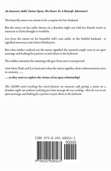 An Innocent Ankle Tattoo Opens The Doors To A Hotwife Adventure! The butterfly tattoo was meant to be a surprise for her husband. But the tattoo on her ankle chosen on a drunken night out with her friends wasn't as innocent as Darla thought it would be. Leo loves the tattoo on his beautiful wife's cute ankle, to the faithful husband - it signified innocence and a hint of kinkyness. But what neither realised was the tattoo signified the married couple were in an open marriage and looking for partners to join them in the bedroom. The sudden attention the stunning wife gets from men is unexpected. And when Darla and Leo learn just what the tattoo signifies, their embarrassment turns to curiosity…….. …..as they start to explore the virtues of an open relationship! This 20,000 word scorching hot novel features an innocent wife getting a tattoo on a drunken night out without realising just what message she was sending - that she was in an open marriage and looking for a partner to join them in the bedroom.