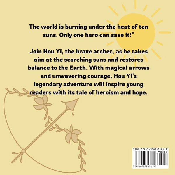 Embark on an enchanting journey with Hou Yi and the 10 Suns, a beautifully illustrated children's book that brings to life one of the most beloved legends from ancient Chinese mythology. This storybook is perfect for young readers and families, capturing the heroic adventure of Hou Yi, the brave archer who saved the Earth from the scorching heat of ten blazing suns. Why This Book is Special:Culturally Rich and Timeless Story:** This retelling of the ancient myth introduces children to a cornerstone of Chinese folklore, teaching them about bravery, sacrifice, and the importance of balance in nature. Hou Yi's legendary story is not just about defeating the suns but about a hero's wisdom and kindness. The book makes ancient culture accessible and engaging for modern readers, creating a bridge between tradition and today's young minds. Stunning Watercolor Illustrations:** Every page bursts with vibrant colors and soft, watercolor-inspired artwork that captures the magic of the ancient world. From the glowing suns to the peaceful landscapes, each image draws children into the story, ensuring they are captivated from start to finish. The cute, cartoonish characters and gentle tones are designed specifically for kids aged 4 to 8, making this book both visually stunning and emotionally comforting. Engaging Hero and Message:** Hou Yi is not your typical warrior. He uses wisdom and empathy, offering the ten suns a chance to retreat before resorting to his powerful bow. Children will learn that even heroes must sometimes make difficult decisions, but compassion always comes first. This theme is perfect for teaching kids the value of kindness alongside courage. Easy-to-Follow Language:** Written in a simple, child-friendly style, *Hou Yi and the Ten Suns* uses concise and engaging language that holds the attention of young readers. Whether you're reading this as a bedtime story or letting early readers explore it themselves, the book's pacing and vocabulary ensure a smooth, enjoyable reading experience. Educational and Fun:** Not only does this book introduce children to one of the most famous myths from China, but it also encourages early literacy and cultural understanding. As children follow Hou Yi's journey, they'll develop empathy, creativity, and an appreciation for global folklore.