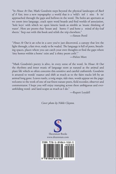 "In House At Out, Mark Goodwin steps into a new topography: a world that is a 'wild's inf i nite b its' approached through the gaps and hollows in the word. The holes are apertures as we zoom into language, crack open word hordes and find worlds of association." -Simon Perril