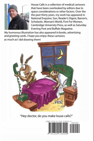 House Calls is a collection of medical cartoons. This is the third book from cartoonist Steve Delmonte. We've all had god and bad experiences visiting the doctor. This books attempts to ease those worries! Steve's work has appeared in Thousands of publications over the last 35 years, In Magazines like the Saturday Evening Post, National Enquirer, Woman's World, First For Women, Reader's Digest, Cambridge University Press, and Buffalo Magazine. Steve's humorous illustration has also appeared in Books, advertising and Greeting cards. Speaking of cards.You can also see more work at www.greetingcarduniverse.com/stevescardstore.He's even done caricatures for corporate and well as private parties. So pick up a copy of this book, you'll feel better for it!