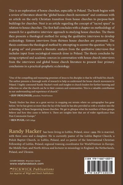 This is an exploration of house churches, especially in Poland. The book begins with a review of literature about the ""global house church movement"" and continues with an article on the early Christian transition from house churches to purpose-built buildings for churches. Next is an article regarding the concept of ""sacred space"" in relation to house churches. The first half concludes with a chapter on methodology of research for a qualitative interview approach to studying house churches. The thesis then presents a theological method for using the qualitative interviews to develop ecclesiology. Sixteen interviews from thirteen house churches are presented. The thesis continues the theological method by attempting to answer the question ""why is it going on"" and presents a thematic analysis from the qualitative interviews that includes input from sociological research done in Poland. The thesis concludes by using scriptural and academic sources in conversation with house church interviews from the interviews and global house church literature to present four primary conclusions in a practical-prophetic ecclesiology.