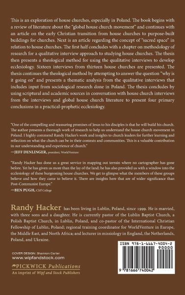 This is an exploration of house churches, especially in Poland. The book begins with a review of literature about the ""global house church movement"" and continues with an article on the early Christian transition from house churches to purpose-built buildings for churches. Next is an article regarding the concept of ""sacred space"" in relation to house churches. The first half concludes with a chapter on methodology of research for a qualitative interview approach to studying house churches. The thesis then presents a theological method for using the qualitative interviews to develop ecclesiology. Sixteen interviews from thirteen house churches are presented. The thesis continues the theological method by attempting to answer the question ""why is it going on"" and presents a thematic analysis from the qualitative interviews that includes input from sociological research done in Poland. The thesis concludes by using scriptural and academic sources in conversation with house church interviews from the interviews and global house church literature to present four primary conclusions in a practical-prophetic ecclesiology.