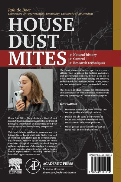 House Dust Mites: Natural History, Control, and Research Techniques presents a complete synthesis of biological information on dust mites from both an ecological and evolutionary perspective. This book allows readers to consume current knowledge on house dust mite biology as well as methods and techniques to conduct personal research. Written by an expert on house dust mite biological research, this book begins with an explanation of the medical importance of understanding dust mites due to their human health repercussions, including asthma and bronchial hyperresponsiveness. It discusses various species, exposure effects, best practices for habitat reduction and preventative options. The book then goes on to detail the house dust mite's biology and behavior, such as food and nutrition, water intake, reproduction, colonization and preferred climates. This is an ideal resource for entomologists and acarologists, as well as medical professionals seeking knowledge on insect-borne allergens.