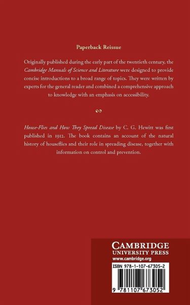 Originally published during the early part of the twentieth century, the Cambridge Manuals of Science and Literature were designed to provide concise introductions to a broad range of topics. They were written by experts for the general reader and combined a comprehensive approach to knowledge with an emphasis on accessibility. House-Flies and How They Spread Disease by C. G. Hewitt was first published in 1912. The book contains an account of the natural history of houseflies and their role in spreading disease, together with information on control and prevention.