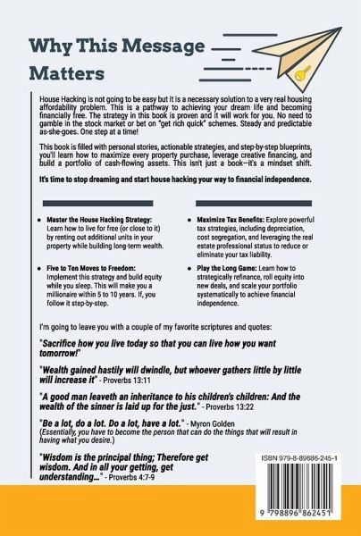 House Hacking The American Dream: A Blueprint for Building Wealth Through Multi-Unit Real Estate In a world where traditional homeownership has become increasingly unaffordable, House Hacking The American Dream challenges the outdated belief that your first home must be a single-family house. Instead, Lavon Woods introduces a proven strategy to build wealth faster and smarter: multi-unit real estate investing. With his combined expertise as a licensed mortgage broker, experienced real estate investor, and builder, Lavon delivers a practical roadmap that empowers first-time homebuyers, aspiring investors, and even seasoned flippers to transform their housing expenses into income-generating assets. This isn't just another real estate book-it's a financial freedom playbook. Lavon breaks down complex lending guidelines, financing tools, and tax-saving strategies into actionable steps you can apply immediately. You'll learn how to leverage low-down-payment loans like FHA, VA, and Conventional financing, maximize rental income, and strategically use forced appreciation to grow equity faster than ever before. Through real-life stories, personal lessons, and proven financial models, House Hacking The American Dream equips you with the tools to: * Turn your first property into a multi-unit income stream. * Maximize tax benefits to legally reduce or eliminate your liability. * Scale your portfolio systematically with strategic refinancing. * Leverage advanced techniques like depreciation, cost segregation, and creative financing. Whether you're planning to build new construction, renovate an existing property, or optimize a single-family home with ADUs, this book provides the clarity, confidence, and coaching mindset to help you succeed. You'll also get access to Lavon's insights on building long-term generational wealth while sidestepping costly mistakes. If you're ready to escape the cycle of paycheck-to-paycheck living and build true financial independence, this book is your guide. It's time to stop working for your money and start letting your money work for you-one house hack at a time. It's time to stop dreaming and start house hacking your way to financial independence. Key Takeaways: 1. Master the House Hacking Strategy: Learn how to live affordably while tenants cover your mortgage, turning your largest expense into a wealth-building asset. 2. Accelerate Wealth with Forced Appreciation: Use strategic improvements to create equity instantly and supercharge your net worth. 3. Tax Strategies That Save Thousands: Understand depreciation, cost segregation, and IRS tax benefits designed for real estate investors. 4. Smart Financing Secrets: Explore FHA, VA, and Conventional loans tailored for multi-unit properties to maximize your purchasing power. 5. Play Monopoly in Real Life: Build, borrow, and grow your portfolio systematically, turning small properties into larger income-generating assets. This book isn't just about homeownership-it's about building a life where your assets create freedom, security, and legacy. Get ready to unlock the doors to your financial future with House Hacking The American Dream.
