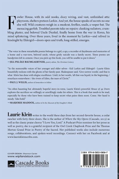 Laurie Klein writes to the world these days from her second-favorite house, a cedar rancher with forty-three doors. She is the author of Where the Sky Opens (Poeima/Cascade, 2015) as well as the classic praise chorus "I Love You, Lord." A Pushcart Prize nominee for her prose as well as poetry, she is a grateful recipient of the Owl Creek Chapbook Prize and the Thomas Merton Grand Prize in Poetry of the Sacred. Her published works also include numerous songs, collaborations, and spoken-word recordings. Connect with her on Facebook and at www.lauriekleinscribe.com.