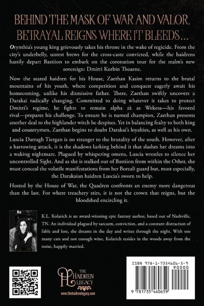 BEHIND THE MASK OF WAR AND VALOR, BETRAYAL REIGNS WHERE IT BLEEDS... Orynthia's young king grievously takes his throne in the wake of regicide. From the city's underbelly, unrest brews for the cross-caste convicted, while the haidrens hastily depart Bastiion to embark on the coronation tour for the realm's new sovereign: Dmitri Korbin Thoarne. Now the seated haidren for his House, Zaethan Kasim returns to the brutal mountains of his youth, where competition and conquest eagerly await his homecoming, unlike his dismissive father. There, Zaethan swiftly uncovers a Darakai radically changing. Committed to doing whatever it takes to protect Dmitri's regime, he fights to remain alpha zà as Wekesa-his favored rival-prepares his challenge. To ensure he is named champion, Zaethan presents another deal to the highlander witch he despises. Yet in balancing fealty to both king and countrymen, Zaethan begins to doubt Darakai's loyalties, as well as his own. Luscia Darragh Tiergan is no stranger to the brutality of the south. However, after a harrowing attack, it is the shadows lurking behind it that slashes her dreams into a waking nightmare. Plagued by whispering omens, Luscia wrestles to silence her uncontrolled Sight. And as she is stalked out of Bastiion from within the Other, she must conceal the volatile manifestations from her Boreali guard but, most especially, the Darakaian haidren Luscia's sworn to help. Hosted by the House of War, the Quadren confronts an enemy more dangerous than the last. For where treachery stirs, it is not the crown that reigns, but the bloodshed encircling it. ¿¿¿The Series House of Darakai is the second installment in the epic fantasy series, The Haidren Legacy. An immersive adventure loaded with dark politics, sharp objects, and bickering characters, this treacherous saga packs a legendary punch for adult and NA readers alike. Thrilling fans of Brandon Sanderson, George R.R. Martin, and Sabaa Tahir, House of Darakai is a savage sequel out for blood.