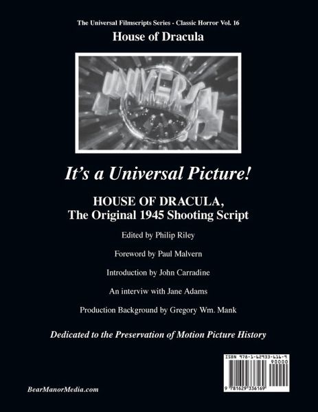 A complete history of the 1945 horror film, with forward by producer Paul Malvern and introduction by film star John Carradine. It contains complete original shooting script, details of the making, rare photographs, complete pressbook, and interview with film star Jane Adams.