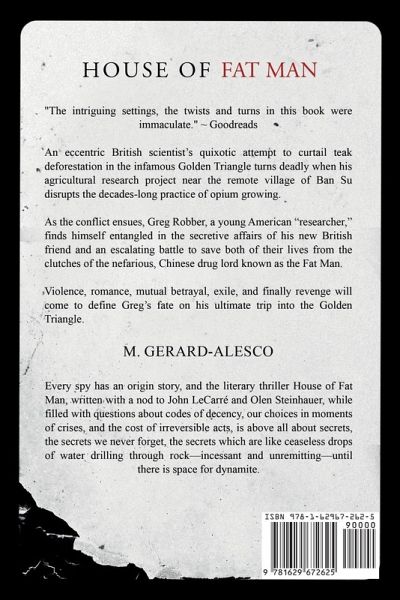 An eccentric British scientist's quixotic attempt to curtail teak deforestation in the infamous Golden Triangle turns deadly when his agricultural research project near the remote village of Ban Su disrupts the decades-long practice of opium growing. As the conflict ensues, Greg Robber, a young American "researcher," finds himself entangled in the secretive affairs of his new British friend and an escalating battle to save both of their lives from the clutches of the nefarious, Chinese drug lord known as the Fat Man. When Lord Saint Clair suddenly disappears in the dangerous hill tribe world of heroin production and drug smuggling, Greg descends into the sordid and sketchy shadows of Chiang Mai, Bangkok, and Pattaya, searching for allies among morally deficient and damaged expats, beautiful (if sullied) women, crooked gamblers, and terrible men-a brood of vipers-all of whom live by lies and lust while hiding their dark pasts. Violence, romance, mutual betrayal, exile, and finally revenge will come to define Greg's fate on his ultimate trip into the Golden Triangle. About the Author Every spy has an origin story, and the literary thriller House of Fat Man, written with a nod to John LeCarré and Olen Steinhauer, while filled with questions about codes of decency, our choices in moments of crisis, and the cost of irreversible acts, is above all about secrets, the secrets we never forget, the secrets which are like ceaseless drops of water drilling through rock-incessant and unremitting-until there is space for dynamite. M. Gerard-Alesco lived in Chiang Mai, Thailand, and traveled throughout Southeast Asia. He later spent four years in Barcelona, Spain and now lives in South Carolina.