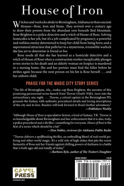 T. K. Thorne's childhood passion for storytelling deepened when she became a police officer in Birmingham, Alabama. "It was a crash course in life and what motivated and mattered to people." In her newest novels, House of Rose and House of Stone, murder and mayhem mix with a little magic when a police officer discovers she's a witch. Both her award-winning debut historical novels, Noah's Wife and Angels at the Gate, tell the stories of unknown women in famous biblical tales-the wife of Noah and the wife of Lot. Her first non-fiction book, Last Chance for Justice, the inside story of the investigation and trials of the 1963 Birmingham church bombing, was featured on the New York Post's "Books You Should Be Reading" list. Her newest nonfiction is Behind the Magic Curtain: Secrets, Spies, and Unsung White Allies of Birmingham's Civil Rights Days. T. K. loves traveling and speaking about her books and life lessons. She writes at her mountaintop home with a horse in the back yard and a cat and dog vying for her lap.