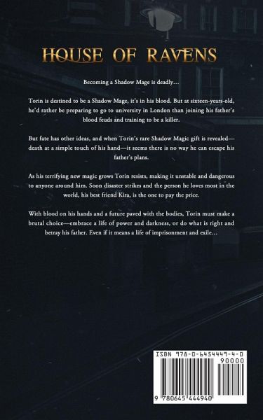 Something dark awoke inside him... Sixteen-year-old Torin will be a shadow mage; it's his destiny. But when he discovers his father's legacy is built on lies and innocent blood, Torin's eyes are opened to a dark new reality. And he wants no part of it. But, in a cruel twist of fate, Torin manifests a rare Shadow Magic power-killing with the touch of his hand-and becomes a pawn for his father's vengeance. With blood on his hands and a future paved with death, Torin must make a choice-betray his father and do what is right, or take on his dark legacy and become the monster he's been running from. . . House of Ravens is a dark, coming of age, urban fantasy, and the captivating prequel to The Shadow Atlas series.