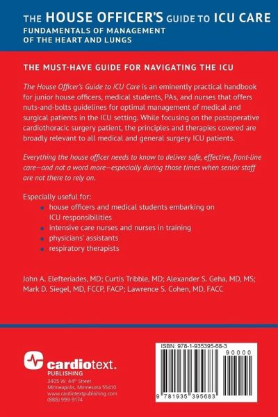 The House Officer's Guide to ICU Care is an eminently practical handbook for junior house officers, medical students, PAs, and nurses that offers nuts-and-bolts guidelines for optimal management of medical and surgical patients in the ICU setting