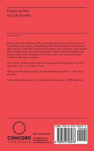 Miracles abound in Fishtown, PA, on the edge of the Delaware River, home of four-flushers and robbers. A baseball-playing Old Man and his two sons brawl, fight, and love in this dark comedy of the realistic and outrageous. A one-armed grifter and his sister enter this hermetically-sealed world, and passions and violence erupt in life-changing ways. House on Fire is a moving and funny parable of redemption and love.