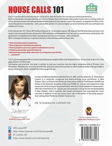If you're serious about starting a house-call practice, then this book is for you and you need to pay attention. Medical Housecalls are back and they are more profitable than ever! People often prefer house calls to visiting clinics or offices because house calls feel personalized and tailored to the specific need of the patient, as opposed to office visits, where the patient is treated like... well, just another patient. It is also an highly lucrative niche that with low overhead costs and barrier to entry. In this Housecalls 101: Policy & Procedure Manual, Dr. Scharmaine Lawson, NP skips all…mehr