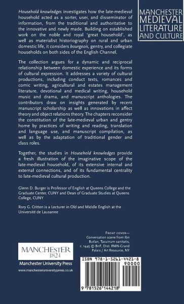 1 Introduction: the home life of information - Glenn D. Burger and Rory G. Critten 2 Knowledge production in the late-medieval married household: the case of Le Menagier de Paris - Glenn D. Burger 3 Knowing incompetence: elite women in Caxton's Book of the Knight of the Tower - Elliot Kendall 4 Renovating the household through affective invention in manuscripts Ashmole 61 and Advocates 19.3.1 - Myra Seaman 5 The Christmas drama of the household of St John's College, Oxford - Elisabeth Dutton 6 Household song in Chaucer's Manciple's Tale - Sarah Stanbury 7 Field knowledge in gentry households: 'pears on a willow'? - Nadine Kuipers 8 Domestic ideals: healing, reading, and perfection in the late-medieval household - Michael Leahy 9 Macrocosm and microcosm in household manuscript Cambridge, University Library MS Ff.2.38 - Raluca Radulescu 10 The multilingual English household in a European perspective: London, British Library MS Harley 2253 and the traffic of texts - Rory G. Critten Index