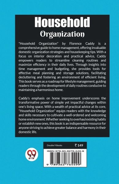 "Household Organization" by Florence Caddy is a comprehensive guide to home management, offering invaluable domestic organization strategies and housekeeping tips. With a focus on interior decoration and practical advice, Caddy empowers readers to streamline cleaning routines and maximize efficiency in their daily lives. Through insights into time management and budgeting, she provides tools for effective meal planning and storage solutions, facilitating decluttering and fostering an environment of efficient living. This book serves as a roadmap for lifestyle management, guiding readers…mehr