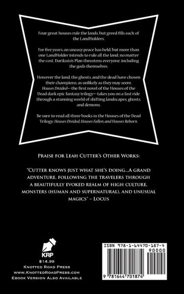 Four great houses rule the lands, but greed fills each of the LandHolders. For five years, an uneasy peace has held, but more than one LandHolder intends to rule all the land, no matter the cost. Darikuto's Plan threatens everyone, including the gods themselves. However the land, the ghosts, and the dead have chosen their champions, as unlikely as they may seem. Houses Divided-the first novel of the Houses of the Dead dark epic fantasy trilogy-takes you on a fast ride through a stunning world of shifting landscapes, ghosts, and demons. Be sure to read all three books in the Houses of the Dead Trilogy: Houses Divided, Houses Fallen, and Houses Reborn.
