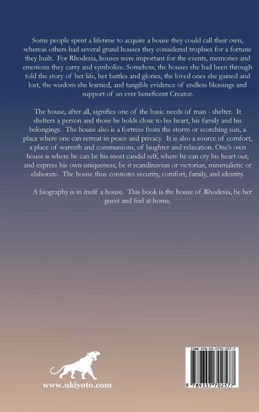 Some people spent a lifetime to acquire a house they could call their own, whereas others had several grand houses they considered trophies for a fortune they built. For Rhodesia, houses were important for the events, memories and emotions they carry and symbolize. Somehow, the houses she had been through told the story of her life, her battles and glories, the loved ones she gained and lost, the wisdom she learned, and tangible evidence of endless blessings and support of an ever beneficent Creator. The house, after all, signifies one of the basic needs of man - shelter. It shelters a person and those he holds close to his heart, his family and his belongings. The house also is a fortress from the storm or scorching sun, a place where one can retreat in peace and privacy. It is also a source of comfort, a place of warmth and communions, of laughter and relaxation. One's own house is where he can be his most candid self, where he can cry his heart out, and express his own uniqueness, be it scandinavian or victorian, minimalistic or elaborate. The house thus connotes security, comfort, family, and identity. A biography is in itself a house. This book is the house of Rhodesia, be her guest and feel at home.