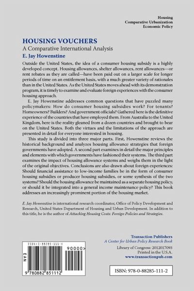 Outside the United States, the idea of a consumer housing subsidy is a highly developed concept. Housing allowances, shelter allowances, rent allowances - or rent rebates as they are called - have been paid out on a larger scale for longer periods of time on an entitlement basis, with a much greater variety of rationales than in the United States. As the United States moves ahead with its demonstration program, it is timely to examine and evaluate foreign experiences with the consumer housing approach.E. Jay Howenstine addresses common questions that have puzzled many policymakers: How do consumer housing subsidies work? For tenants? Homeowners? Builders? And government officials? Gathered here is the definitive experience of the countries that have employed them. From Australia to the United Kingdom, here is the reality gleaned from a dozen countries and brought to bear on the United States. Both the virtues and the limitations of the approach are presented in detail for everyone interested in housing.This study is divided into three major parts. First, Howenstine reviews the historical background and analyzes housing allowance strategies that foreign governments have adopted. A second part examines in detail the major principles and elements with which governments have fashioned their systems. The third part examines the impact of housing allowance systems and weighs them in the light of the original objectives. Conclusions are also drawn about foreign experiences: Should financial assistance to low-income families be in the form of consumer housing subsidies or producer housing subsidies, or some synthesis of the two systems? Should the housing allowance be maintained as a separate housing policy, or should it be integrated into a general income maintenance policy? This book addresses an increasingly prominent portion of the housing market.