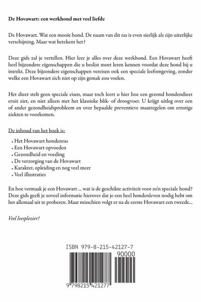 De Hovawart: een werkhond met veel liefde De Hovawart. Wat een mooie hond. De naam van dit ras is even sierlijk als zijn uiterlijke verschijning. Maar wat betekent het? Deze gids zal je vertellen. Hier leer je alles over deze werkhond. Een Hovawart heeft heel bijzondere eigenschappen die u beslist moet leren kennen voordat deze hond bij u intrekt. Deze bijzondere eigenschappen vereisen ook een speciale leefomgeving, zonder welke een Hovawart zich niet op zijn gemak zou voelen. Het dieet stelt geen speciale eisen, maar toch leert u hier hoe een gezond hondendieet eruit ziet, en niet alleen met het klassieke blik- of droogvoer. U krijgt uitleg over een of ander gezondheidsprobleem en over bepaalde preventieve maatregelen om ernstige ziekten te voorkomen. De inhoud van het boek is:Het Hovawart hondenras Een Hovawart opvoeden Gezondheid en voeding De verzorging van de Hovawart Karakter, opleiding en nog veel meer Veel illustraties En hoe vermaak je een Hovawart ... wat is de geschikte activiteit voor zo'n speciale hond? Deze gids geeft je zoveel informatie hierover dat je een heel hondenleven nodig hebt om het allemaal uit te proberen. Maar misschien volgt er na de eerste Hovawart een tweede... Veel leesplezier!