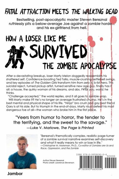 Bestselling, award-winning, post-apocalyptic master Steven Bereznai ruthlessly pits a below-average Joe against a zombie horde...and his ex-girlfriend from hell. After a devastating breakup, loser Marty Melon doggedly reassembles his shattered self. Confidence boosting Ted Talks, muscle-crushing kettlebell swings, and key episodes of The Golden Girls transform him from zero to b-list hero. This suicidal reject, turned pick-up artist, turned sensitive new age guy, finally has it all: a house, the quirky woman of his dreams, and abs. "F#%%k you, world," he thinks with alpha confidence. "Challenge accepted," the world replies, and everything goes to zombie crap. Will Marty make it? He's no longer an average frustrated chump. He's in the best mental and physical shape of his life. "Ninja" bro crush and gay-best-friend Gary is at his side. But to triumph in the end-of-days, Marty must defeat his most dangerous foe of all-the woman who broke him in the first place.