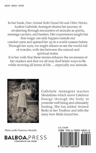 In her book, How Animal Reiki Found Me and Other Stories, Author Gabriele Annegret shares her journey of awakening through encounters of animals as spirits, message carriers, and healers. Her experiences taught her that magic can only happen outside our comfort zone and opened her up to a world unseen before. Through her eyes, we might relearn to see the world full of wonder, with ties between the natural and spiritual realm. It is her wish that these stories enhance the awareness of her readers and that we all may find better ways to Be while revering all forms of life ... especially our animals.