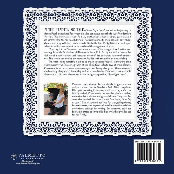 Discover the heartwarming tale of a little girl's journey to understand the limitless bounds of love. Amidst the arrival of her new sibling, she embarks on an adventure with her woodland pals to learn about the ever-expanding nature of parental affection. Meet Marlee Pearl, an adorable four-year-old who has enjoyed basking in the undivided adoration of her family. Suddenly, she learns she's about to welcome a little brother into her life. Worried about the changes that might bring, she wonders if her parents will still have enough affection for her. Being the vibrant and inquisitive child she is, Marlee Pearl decides to unravel this mystery. Accompanied by her faithful friends - Rachel Robin, Rocky Raccoon, and Ryan Rabbit, she embarks on an exciting expedition. Their quest is to find the answer to Marlee's pressing question - How Big Is Love? The book, How Big Is Love? is not just a story; it is a journey of discovery and learning. It gently introduces children to the concept of family dynamics changing with the arrival of a new member. It also reassures them about the infinite nature of love - especially the love parents have for their children, which does not diminish but rather multiplies. This charming tale is sure to engage young readers, stirring their curiosity while reassuring them of the unchanging, boundless love of their parents. It is an ideal read for children navigating similar changes in their own families, or for those simply seeking a heartwarming story of friendship and love. Come along on Marlee Pearl's adventure and uncover the answer to the question, How Big Is Love?