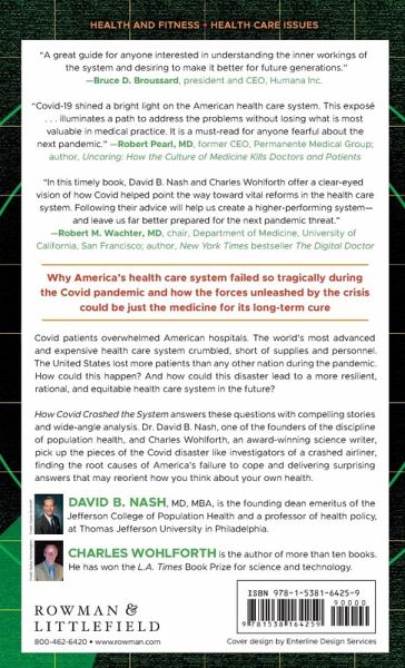 Why America's health care system failed so tragically during the Covid pandemic, and how the forces unleashed by the crisis could be just the medicine for its long-term cure. Covid patients overwhelmed American hospitals. The world's most advanced and expensive health care system crumbled, short of supplies and personnel. The U.S. lost more patients than any other nation during the pandemic. How could this happen? And how could this disaster lead to a more resilient, rational and equitable health care system in the future? How Covid Crashed the System answers these questions with compelling stories and wide-angle analysis. Dr. David Nash, a founder of the discipline of population health, and Charles Wohlforth, an award-winning science writer, pick up the pieces of the Covid disaster like investigators of a crashed airliner, finding the root causes of America's failure to cope, and delivering surprising answers that may reorient how you think about your own health. From the broadest, cultural flaws that disabled our health system to particular, institutional issues, America's defenses fell due to racism and poverty, combined with a culture of misguided individualism that tore communities apart. We suffered from failed leadership and crippled public health agencies, and hospitals built to make money from services, not deliver health. But How Covid Crashed the System goes beyond analyzing those problems, providing hope for change and fundamental improvement in ways that will transform Americans' health. Covid's market disruption encouraged new technology that allows for remote health care. Integrated health organizations gained ground, working to manage clients' total wellness from cradle to grave. Covid also accelerated changes in medical education, to make doctor training more equitable and better aligned to the skills we need. And Covid forced employers to accept responsibility for their workers' health in a new way, making them partners in this new movement. Using systemic analysis of the Covid crash, the authors find reasons to hope. America's health care establishment resisted reform for decades, mired in waste and avoidable errors. Now, the pandemic crisis has exposed its flaws for all to see, creating the opportunities for systemic changes. Even without new laws or government policies, America is moving toward a transformed health system responsible for our wellness. How Covid Crashed the System tells that story.