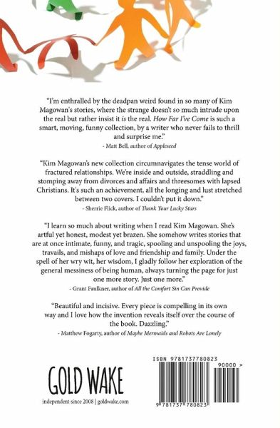 "I'm enthralled by the deadpan weird found in so many of Kim Magowan's stories, where the strange doesn't so much intrude upon the real but rather insist it is the real. How Far I've Come is such a smart, moving, funny collection, by a writer who never fails to thrill and surprise me." -Matt Bell, author of Appleseed "Kim Magowan's new collection circumnavigates the tense world of fractured relationships. We're inside and outside, straddling and stomping away from divorces and affairs and threesomes with lapsed Christians. It's such an achievement, all the longing and lust stretched between two covers. I couldn't put it down." --Sherrie Flick, author of Thank Your Lucky Stars "I learn so much about writing when I read Kim Magowan. She's artful yet honest, modest yet brazen. She somehow writes stories that are at once intimate, funny, and tragic, spooling and unspooling the joys, travails, and mishaps of love and friendship and family. Under the spell of her wry wit, her wisdom, I gladly follow her exploration of the general messiness of being human, always turning the page for just one more story. Just one more." --Grant Faulkner, author of All the Comfort Sin Can Provide ""Beautiful and incisive. Every piece is compelling in its own way and I love how the invention reveals itself over the course of the book. Dazzling." --Matthew Faogarty, author of Maybe Mermaids and Robots Are Lonely