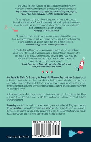 How Games Get Made: The Stories of the People Who Make and Play the Games We Love is your all-in-one comprehensive deep dive into the lives of developers and online platforms that create and broadcast your favorite games. What is it like solo developing a game from scratch? Is employment stable in the industry? And just how do people end up as gaming-focused Twitch streamers or YouTubers for a living? All these questions and more are answered through interviews with the likes of David Cage of Quantic Dream, Feargus Urquhart of Obsidian Entertainment, and Sean Baptiste of Bethesda among many others! Wondering what it's like to work in a corporate setting versus an indie studio? Trying to break into the gaming industry as a content creator? Look no further! How Games Get Made not only goes in depth on the developers, but also takes a comprehensive look at how games get marketed through traditional means as well as through platforms like YouTube and Twitch!