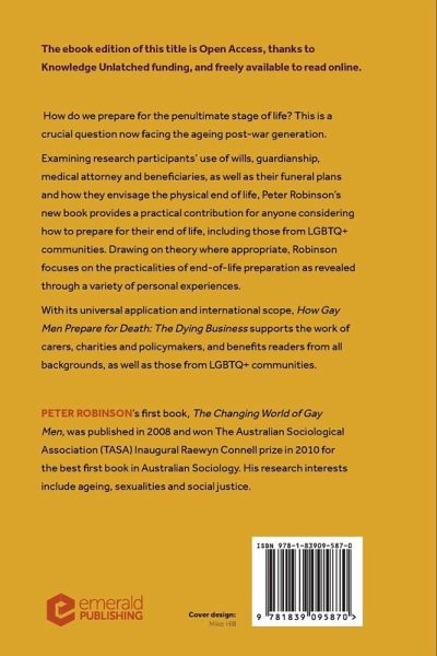The ebook edition of this title is Open Access, thanks to Knowledge Unlatched funding, and freely available to read online. Peter Robinsonâ s new book provides a practical contribution for anyone considering how to prepare for their end of life, including those from LGBTQ+ communities.