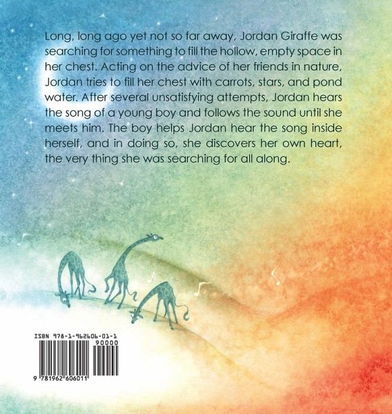 Long, long ago yet not so far away, Jordan Giraffe was searching for something to fill the hollow, empty space in her chest. Acting on the advice of her friends in nature, Jordan tries to fill her chest with carrots, stars, and pond water. After several unsatisfying attempts, Jordan hears the song of a young boy and follows the sound until she meets him. The boy helps Jordan hear the song inside herself, and in doing so, she discovers her own heart, the very thing she was searching for all along. From the Author: Giraffe Tales is a series of beautifully illustrated children's picture story books. Giraffes, one of the land animals with the largest hearts, are sometimes referred to as symbols of Nonviolent Communication since our hearts are where we hold the feelings and needs we most cherish. How Giraffe's Found Their Hearts is a story of the importance of being connected to our own hearts so we can live from our own values and joy. In How the Giraffe's Got Their Ears, the giraffes find joy when they are able to hear the beautiful feelings and needs in all hearts, in other words, when they are able to empathize with each other. Back matter includes discussion prompts and an activity.