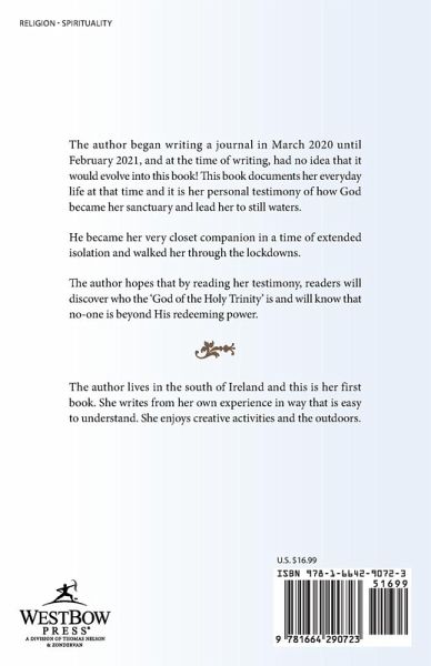 The author began writing a journal in March 2020 until February 2021, and at the time of writing, had no idea that it would evolve into this book! This book documents her everyday life at that time and it is her personal testimony of how God became her sanctuary and lead her to still waters. He became her very closet companion in a time of extended isolation and walked her through the lockdowns. The author hopes that by reading her testimony, readers will discover who the 'God of the Holy Trinity' is and will know that no-one is beyond His redeeming power.