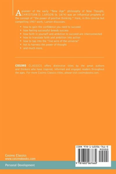A pioneer of the early "New Age" philosophy of New Thought, CHRISTIAN D. LARSON (b. 1874) was an influential prophets of the concept of "the power of positive thinking." Here, in this concise but compelling 1907 work, Larson discusses: . how to gain the confidence you need to succeed . how feeling successful breeds success . how faith in yourself and ambition to succeed are interconnected . how to translate faith and ambition into action . how to tap into the "live wire of the universe" . hot to harness the power of thought . and much more.