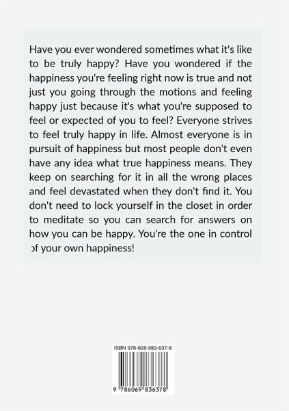 How Happiness Happens: The Ultimate Book on True Happiness, Learn Everything You Need to Know on How You Can BeTruly Happy in Life Have you ever wondered sometimes what it's like to be truly happy? Have you wondered if the happiness you're feeling right now is true and not just you going through the motions and feeling happy just because it's what you're supposed to feel or expected of you to feel? Everyone strives to feel truly happy in life. Almost everyone is in pursuit of happiness but most people don't even have any idea what true happiness means. They keep on searching for it in all the wrong places and feel devastated when they don't find it. This book will teach you how you can discover yourself so you can learn what real happiness means. It will help you unravel what it takes to finally know the true meaning of happiness. It will teach you how to find genuine happiness within yourself. This book will discuss the following topics: Basics on Happiness Why Are People So Sad Today? What is True Happiness What is the Empowered Happiness Mindset? Traditional Happiness Ideas vs New Age Ideas What Does Empowerment For Happiness Mean to You (How to Set Goals) Why Adopt the Empowerment Mindset for Happiness Tips for Becoming Empowered For Happiness The Good and Bad About the Empowerment Mindset For Happiness You don't need to lock yourself in the closet in order to meditate so you can search for answers on how you can be happy. You're the one in control of your own happiness and after learning some of the advice in this book, it will help guide you to find that happiness. Don't hesitate to scroll up and click "add to cart" so you can start your journey towards happiness today.