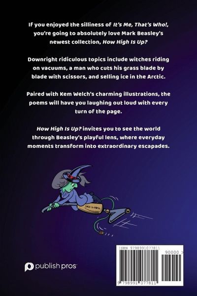 The wait is over! Mark Beasley's second book of hilarious illustrated poems is here! If you enjoyed the silliness of It's Me, That's Who!, you're going to absolutely love the humorous take on everyday situations in How High Is Up?. Downright ridiculous topics include:Witches riding on vacuums A man who cuts his grass blade by blade with scissors Calling Santa on the phone Selling ice in the Arctic Each hilarious rhyme is made even more enjoyable with playful illustrations by Kem Welch. Makes a great Christmas gift! Order copies for all of the fun-loving people in your life today!