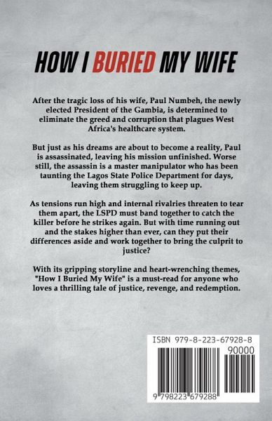 After the tragic loss of his wife, Paul Numbeh, the newly elected President of the Gambia, is determined to eliminate the greed and corruption that plagues West Africa's healthcare system. But just as his dreams are about to become a reality, Paul is assassinated, leaving his mission unfinished. Worse still, the assassin is a master manipulator who has been taunting the Lagos State Police Department for days, leaving them struggling to keep up. As tensions run high and internal rivalries threaten to tear them apart, the LSPD must band together to catch the killer before he strikes again. But with time running out and the stakes higher than ever, can they put their differences aside and work together to bring the culprit to justice? With its gripping storyline and heart-wrenching themes, "How I Buried My Wife" is a must-read for anyone who loves a thrilling tale of justice, revenge, and redemption.