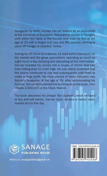 Nicolas Darvas was a dancer, self-taught investor and author. He is best known for his book, "How I Made $2,000,000 in the Stock Market." He discovered investing in 1952, when a Toronto nightclub, unable to pay him in cash, instead paid him with shares. It was on a two-year tour of the world that he initially developed his 'Darvas Box' method of screening stocks - a method of picking stocks based on the stock's price and volume - and later went on to refine this to remove any human element from his trading to substantial success. Nicolas Darvas is regarded as one of the best traders in the history of the market and his method, whilst complicated and difficult to master, has been rigorously tested and has been found to be one of the best trading systems yet developed.