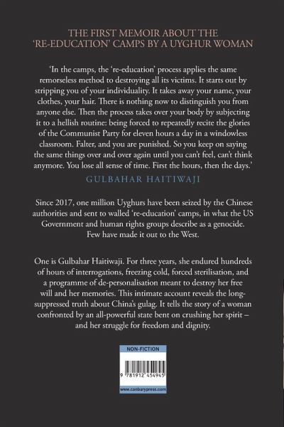 'Intimate, highly sensory' ★★★★★ - Daily Telegraph 'Indispensable' - Sunday Times 'Harrowing' - New Statesman 'A powerful personal narrative' - Irish Times THE FIRST MEMOIR ABOUT THE 'RE-EDUCATION' CAMPS BY A UYGHUR WOMAN For three years, Gulbahar Haitiwaji disappeared into a secret network of jails. Now, she is the first female Uyghur survivor to give a connected and revealing account of life inside China’s brainwashing ‘re-education’ camps. Her account reads like a modern version of 1984. It tells the story of a woman confronted by an all-powerful state bent on crushing her spirit - and her struggle for freedom and dignity. This rare portrait of China’s gulag is visceral and internationally important. 'An intimate, highly sensory self-portrait... of an educated woman passing through a system that appears at turns cruel, paranoid, capricious and devastatingly effective.' - Daily Telegraph 'Gulbahar's memoir is an indispensable account, which makes vivid the stench of fearful sweat in the cells, the newly built prison’s permanent reek of white paint. It closely corresponds with other witness statements... Most impressive is her psychological honesty.' - Sunday Times